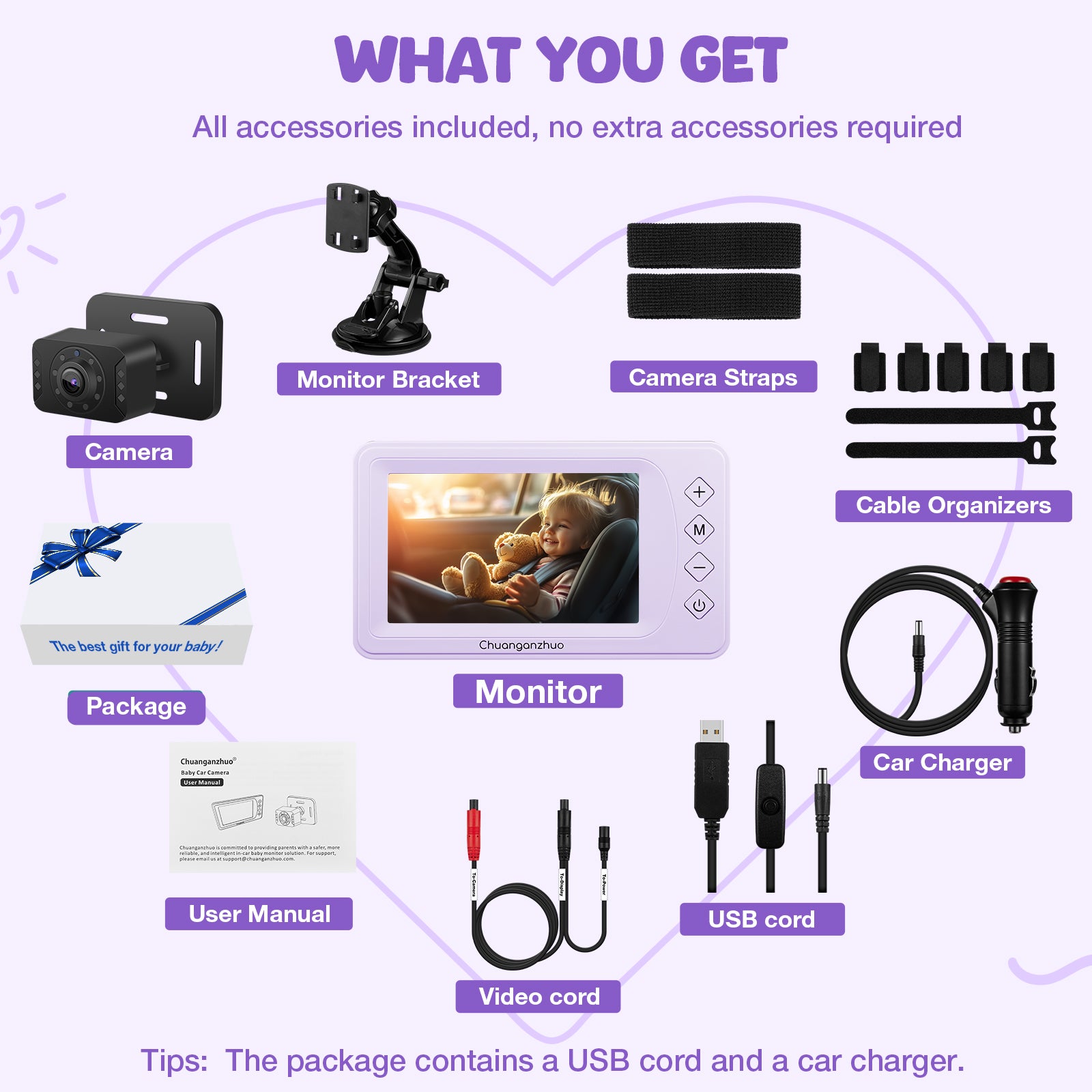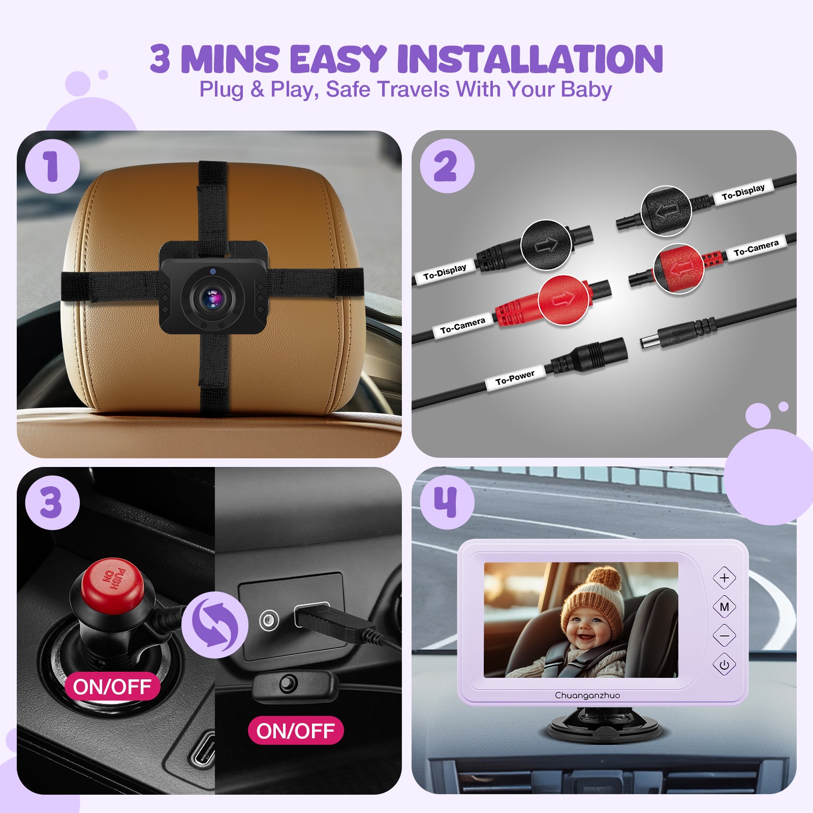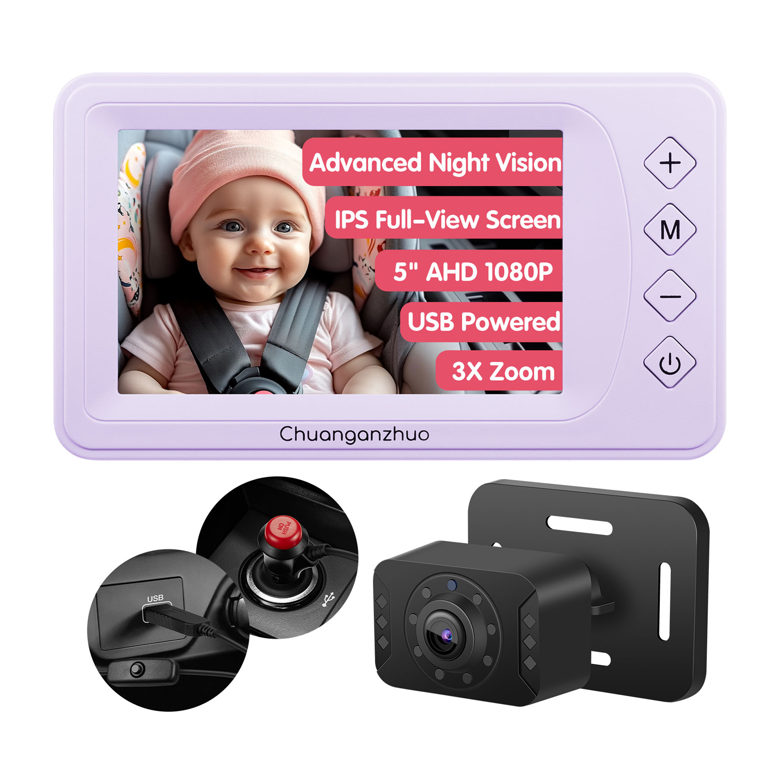 Baby Car Camera with Advanced Crystal-Clear Night Vision, S100U-Purple