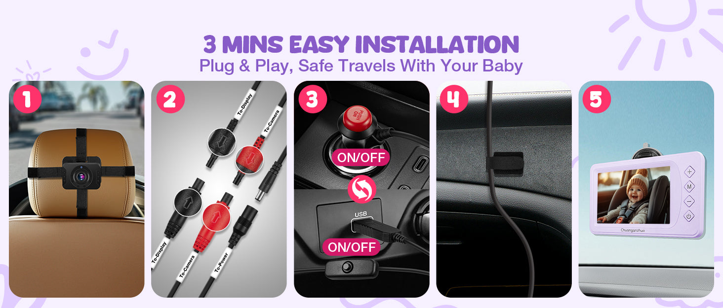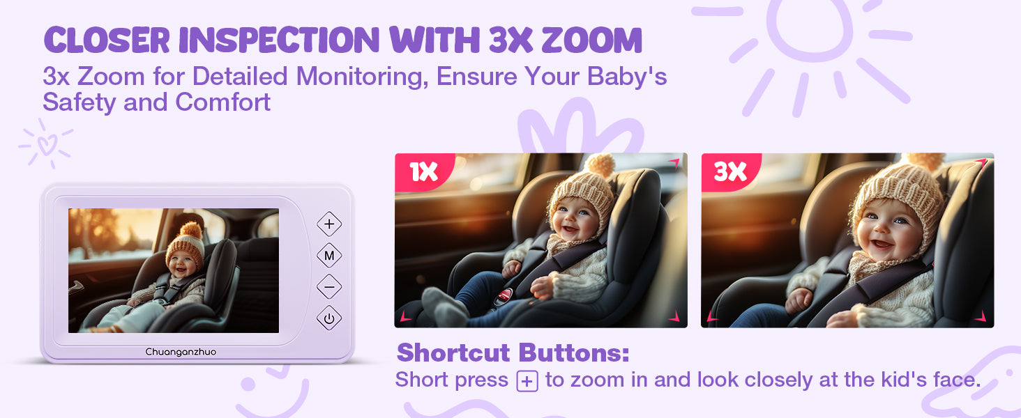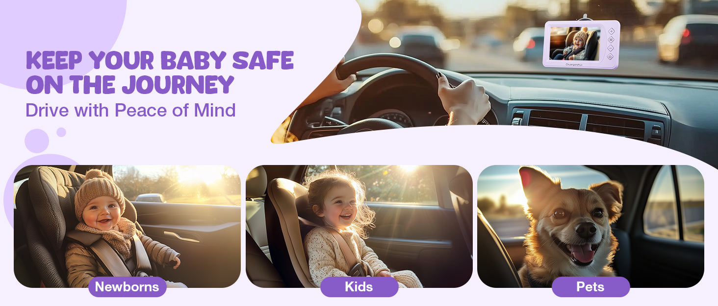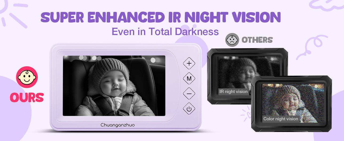 Baby Car Camera with Advanced Crystal-Clear Night Vision, S100U-Purple