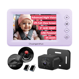 Baby Car Camera with Advanced Crystal-Clear Night Vision, USB C adapter, S100U-Purple
