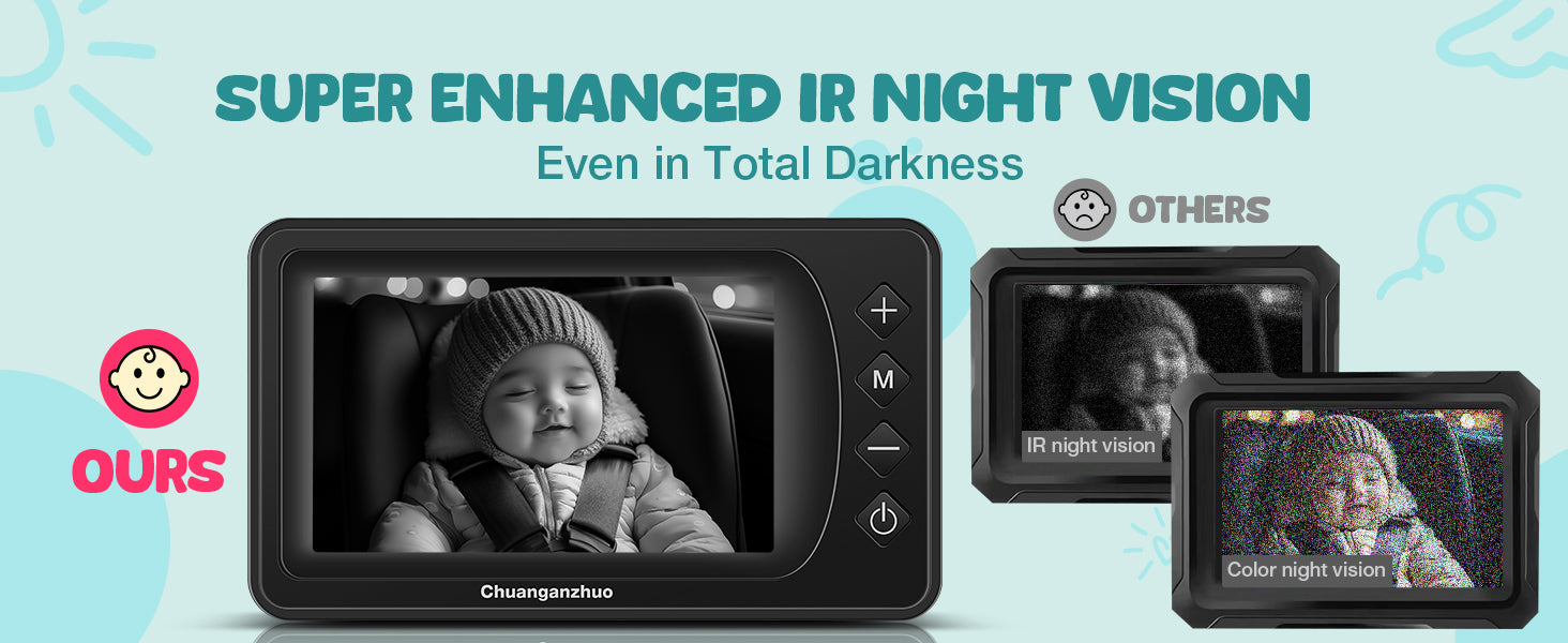 Baby Car Camera with Advanced Crystal-Clear Night Vision, S100U-Black